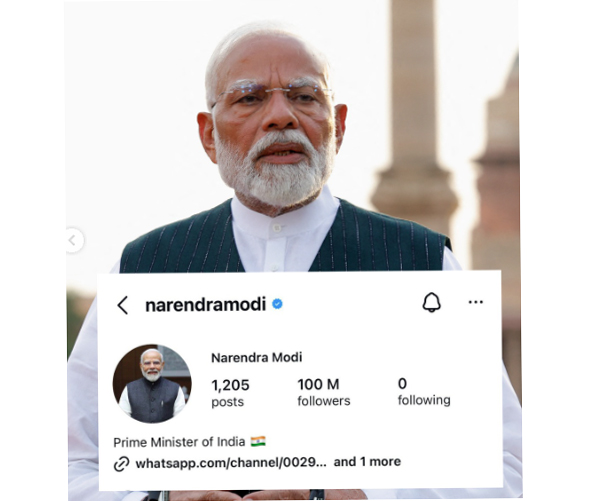 இன்ஸ்டாகிராமில் 10 கோடி பின்தொடர்பாளர்களை கடந்த முதல் உலகத் தலைவர் என்ற சாதனையைப் பிரதமர் நரேந்திர மோடி படைத்துள்ளார். அமெரிக்க அதிபர் டொனால்ட் டிரம்ப்பைவிட இரண்டு மடங்கு அதிக பின்தொடர்பாளர்கள் இன்ஸ்டாகிராமில் இருப்பது குறிப்பிடத்தக்கது.