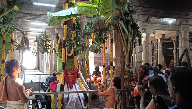 நிகழாண்டு இத்திருவிழா வெள்ளிக்கிழமை கொடியேற்றத்துடன் தொடங்கியது. இதையொட்டி கோயிலில் வியாழக்கிழமை கணபதி ஹோமம், சுவாமி அம்பாளுக்கு சிறப்பு அபிஷேகம் உள்ளிட்டவை நடைபெற்றது. வெள்ளிக்கிழமை காலையில் கொடியேற்று வைபவத்தை தொடர்ந்து சிறப்பு பூஜைகள் நடைபெற்றன. இதில், கோயில் செயல் அலுவலர் கு. பாரதி, கட்டளைதாரர் தளபதி ராம்குமார், திரளான பக்தர்கள் கலந்துகொண்டனர்.