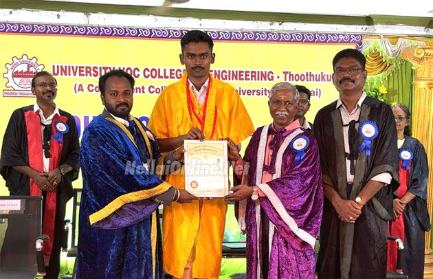 தூத்துக்குடி அண்ணா பல்கலைக்கழக வளாகத்தில் உள்ள வ.உ.சி பொறியியல் கல்லூரியின் பட்டமளிப்பு விழா நடைபெற்றது. இதில் சிறப்பு விருந்தினராகப் பங்கேற்ற விஞ்ஞானி டேனியல் ரொனால்ட் ஜோசப், இளம் பொறியாளர்களுக்குப் பட்டங்களை வழங்கிப் பட்டமளிப்பு உரை நிகழ்த்தினார்.