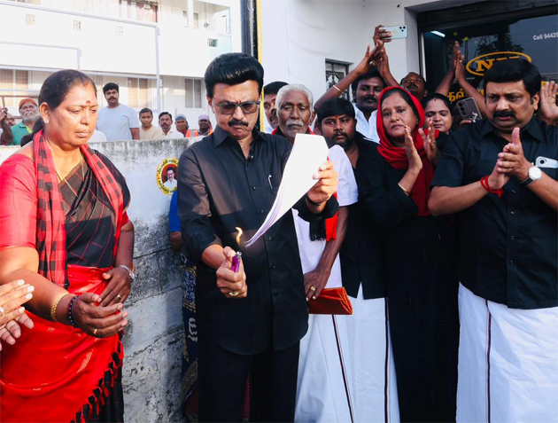தேர்தல் பிரசாரத்திற்காக நேற்று இரவு நாமக்கல் வந்த முதல்வர் ஸ்டாலின், இன்று காலை நல்லிபாளையம் பகுதியில் கருப்பு உடை அணிந்து வந்து போராட்டத்தில் பங்கேற்றார். அங்குள்ள ஒரு வீட்டின் முன்பு தொகுதி மறுவரையறைக்கு எதிர்ப்பு தெரிவித்து கருப்புக்கொடியை ஏற்றினார். அதனைத் தொடர்ந்து, மசோதாவின் நகலைத் தீயிட்டு எரித்து தனது எதிர்ப்பைப் பதிவு செய்தார். அப்போது அவருடன் இருந்த திமுகவினர், மத்திய அரசுக்கு எதிராக முழக்கங்களை எழுப்பினர்.