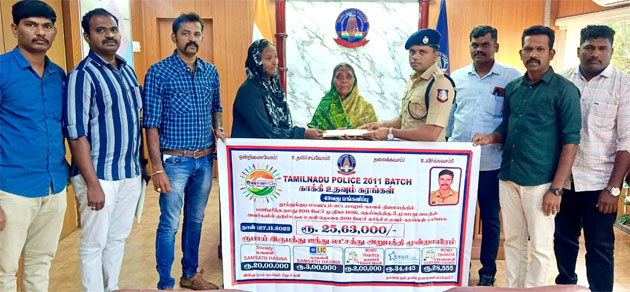 தூத்துக்குடி மாவட்டம் எட்டையபுரம் காவல் நிலையத்தில் பணியாற்றி வந்த முதல் நிலை காவலர் முகமது மைதீன் என்பவர் கடந்த 23.04.2025 அன்று உடல் நலக்குறைவால் காலமானார். அவரது குடும்பத்திற்கு உதவும் வகையில் கருணையுள்ளத்தோடு அவருடன் 2011ம் ஆண்டு காவலர் பணியில் சேர்ந்த தமிழ்நாடு முழுவதுமுள்ள சக காவலர்கள் ஒன்று திரண்டு ரூ.25,63,000 பணம் நன்கொடையாக பெற்றனர்.