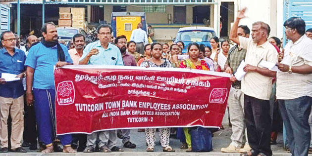 தூத்துக்குடியில் வங்கி ஊழியர்கள் ஆர்ப்பாட்டம்: தொழிற்சங்கங்களின் போராட்டத்திற்கு ஆதரவு