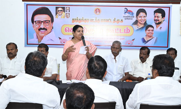 தலைமைச் செயற்குழு உறுப்பினர்கள் ஜீ.வி. மார்க்கண்டேயன் எம்எல்ஏ, மாநகராட்சி மேயர் ஜெகன் பெரியசாமி, என். ராதாகிருஷ்ணன் மற்றும் மாநகரச் செயலாளர் ஆனந்தசேகரன் ஆகியோர் முன்னிலை வகித்தனர். மாவட்டச் செயலாளரும், சமூக நலன் மற்றும் மகளிர் உரிமைத் துறை அமைச்சருமான பி. கீதா ஜீவன் சிறப்பு அழைப்பாளராகக் கலந்துகொண்டு, கட்சியின் வளர்ச்சிப் பணிகள் மற்றும் எதிர்வரும் தேர்தல் பணிகள் குறித்து விரிவாக உரையாற்றினார்.