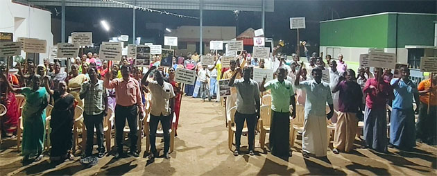 தலைமைப் பொறுப்பாளர் சண்முகம் வரவேற்புரையாற்றினார். வீரத்தமிழர் முன்னணியின் மாநில ஒருங்கிணைப்பாளர் வைகுண்டமாரி, தமிழ்த் தேசியப் பேரவையின் பொறுப்பாளர் மணிமாறன், சமூக ஆர்வலர் பிரபா ஆகியோர் ஆகியோர் கண்டன உரையாற்றினர். நிகழ்வின் இறுதியில் பாலமுருகன் நன்றியுரை வழங்கினார். இதில் திரளான பொதுமக்கள் கலந்துகொண்டு தங்கள் கோரிக்கைகளை வலியுறுத்தி முழக்கமிட்டனர்.