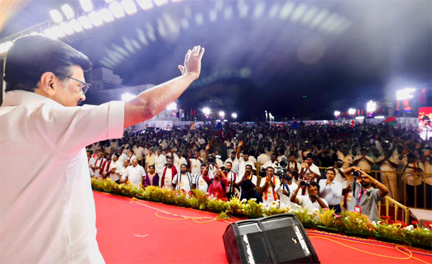நெல்லையில் நடைபெற்ற தேர்தல் பிரசார பொதுக்கூட்டத்தில், ரஜினி படப் பாடலைப் பாடி முதலமைச்சர் மு.க.ஸ்டாலின் தொண்டர்களை உற்சாகப்படுத்தினார்.
