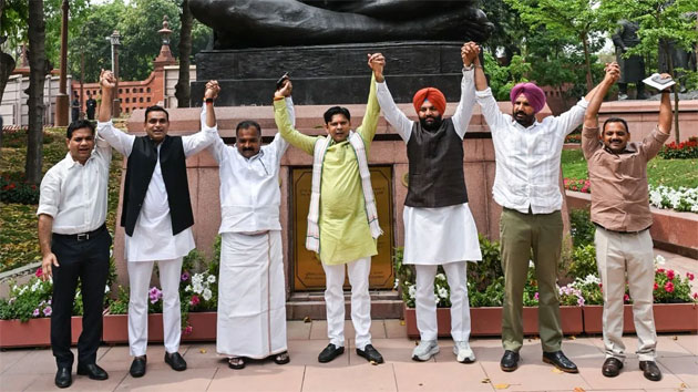 இதையடுத்து, எம்.பி.க்கள் நாடாளுமன்ற வளாகத்திலுள்ள மகாத்மா காந்தி சிலைக்கு மரியாதை செலுத்திவிட்டு, மீண்டும் அவை நடவடிக்கைகளில் பங்கேற்றனர்.