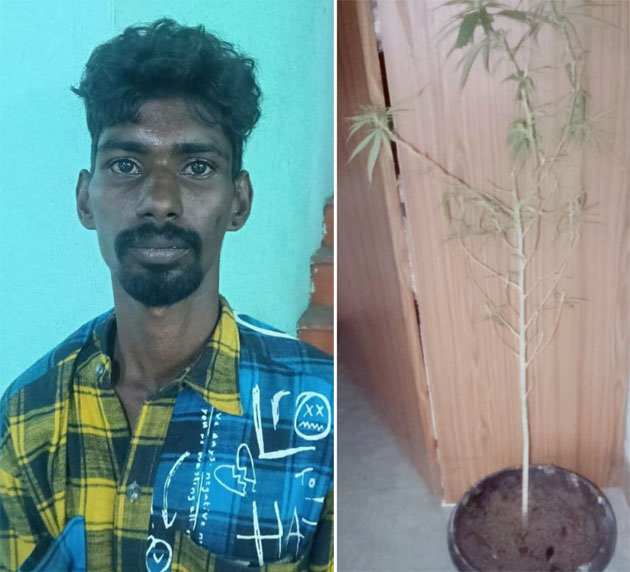 வீட்டில் பூந்தொட்டியில் கஞ்சா வளர்த்த இளைஞர் கைது!
