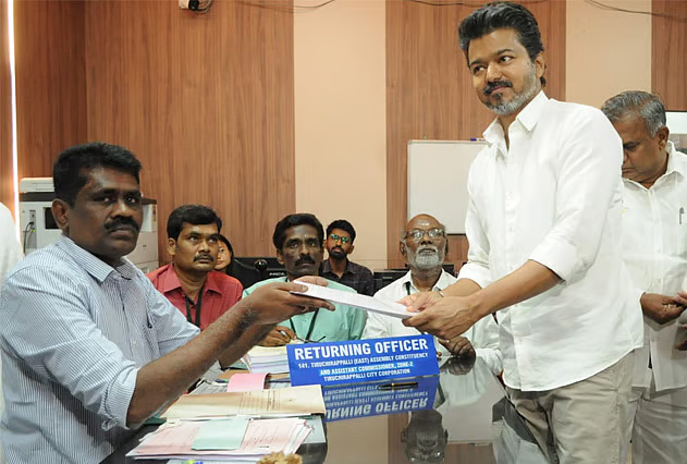 தமிழக சட்டமன்றத் தேர்தலில் சென்னை பெரம்பூர் மற்றும் திருச்சி கிழக்கு ஆகிய இரண்டு தொகுதிகளில் போட்டியிடும் தமிழக வெற்றிக் கழகத் தலைவர் விஜய், இன்று திருச்சி கிழக்குத் தொகுதியில் தனது வேட்புமனுவைத் தாக்கல் செய்தார்.
